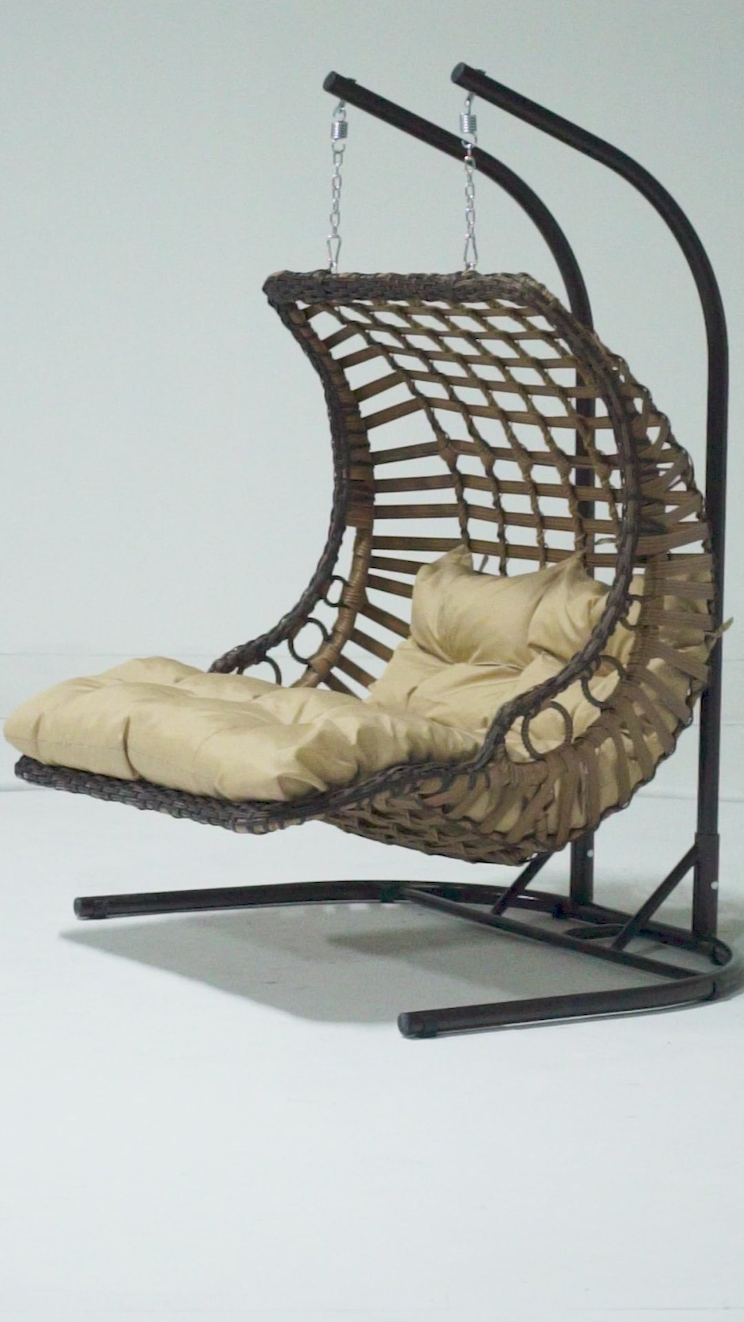 Unser Hängekorb wird unkompliziert mit Haken an der Aufhängung des Gestells aus Stahl befestigt. Mit dem beiliegenden Montagezubehör gelingt der Aufbau in nur wenigen Minuten. Zudem kann Der Hängekorbsessel direkt von den Federhaken entfernt werden, wodurch er leicht zerlegt und transportiert werden kann. Der Demontageschritt ist einfach und es ist leicht zu transportieren.