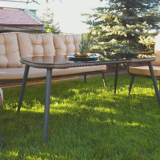 Porto 2-Sitzer Rattan Gartenmöbel Set mit Tisch | Balkon & Terrasse | Wetterfest & Modern